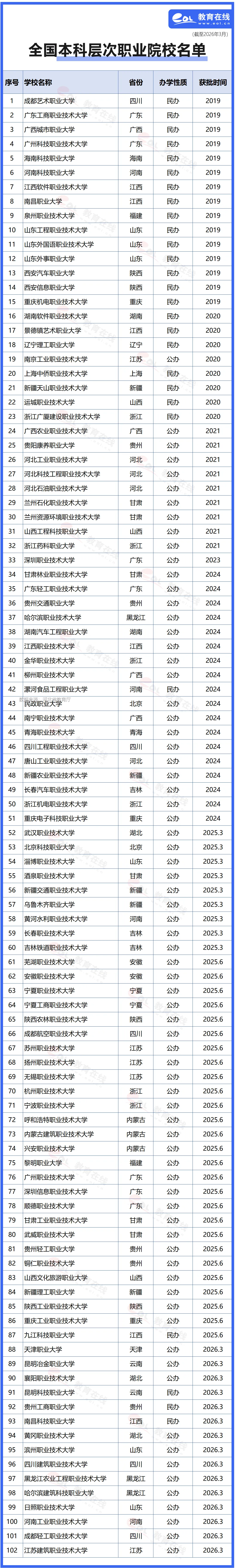至此,全国职业本科高校超过百所,共计102所。