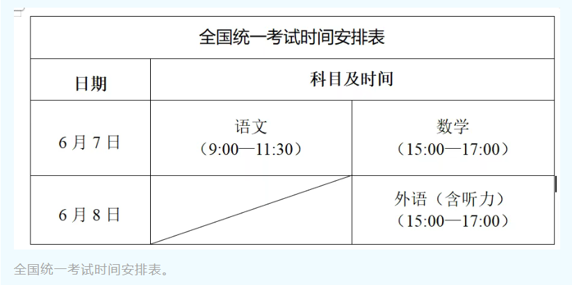 其中,全国统一考试科目考试时间安排在6月7日全天和6月8日下午。普通高中学业水平选择性考试科目考试时间安排在6月8日上午和6月9日全天,每科考试时长均为75分钟。